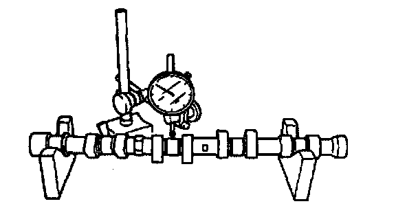 1. Set the No.1 and No.5 journals on V-blocks. Measure the camshaft runout. Replace the camshaft as necessary.