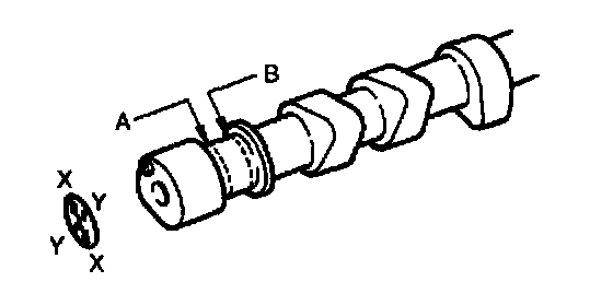 3. Measure the journal diameters in X and Y directions at the two points (A and B) as shown. Replace the camshaft as necessary.
