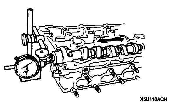 2. Measure the camshaft end play. Replace the cylinder head or camshaft as necessary.