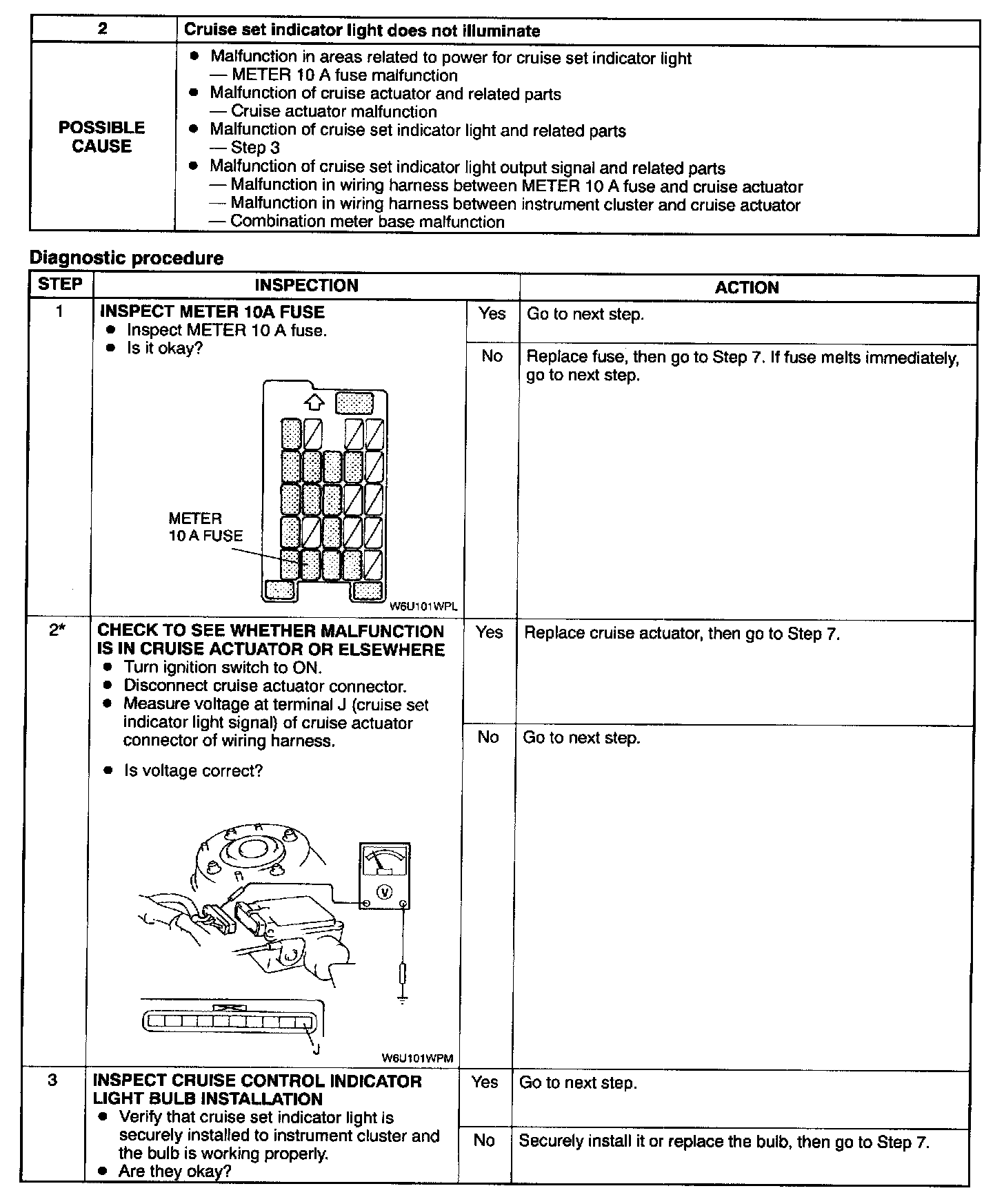 2. Cruise Set Indicator Light Does Not Illuminate