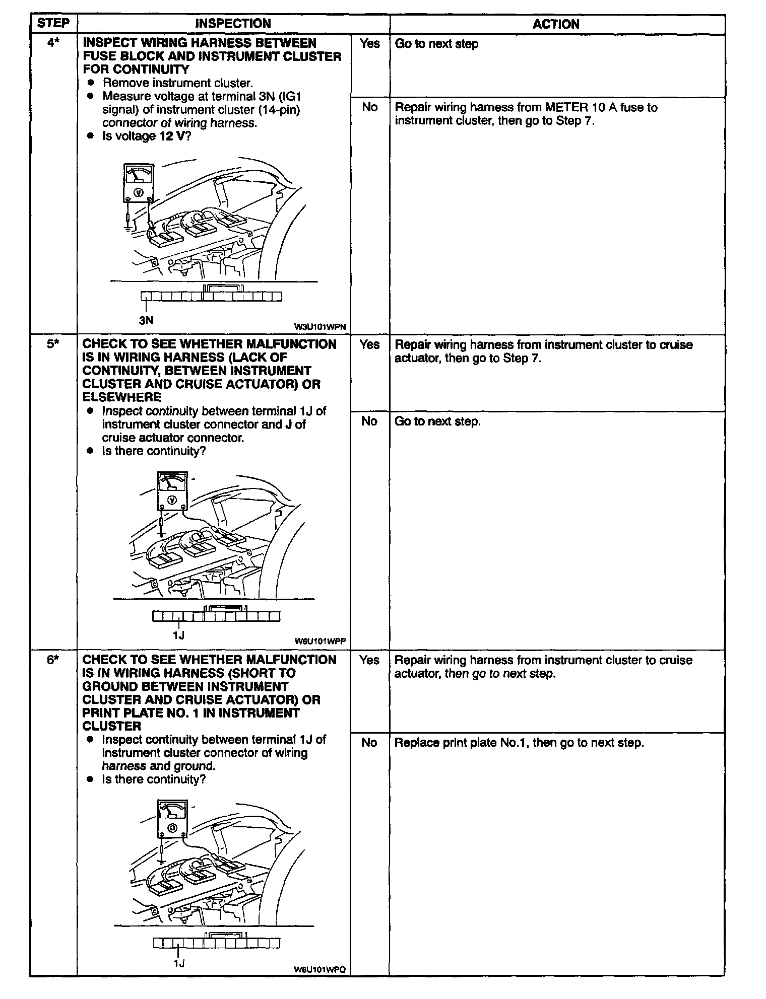 When performing an asterisked(*) troubleshooting inspection, shake the wiring harness and connectors while doing the inspection to discover whether poor contact points are the cause of any intermittent malfunctions. If there is a problem, check to make sure connectors, terminals and wiring harness are connected correctly and undamaged.
