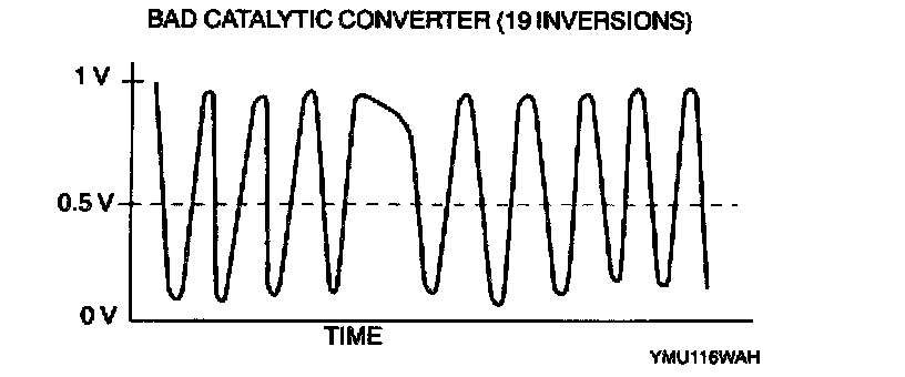 RATIO = 26 Inversions (upstream HO2S Inversions) / 19 Inversions (downstream HO2S inversions) = 1.4 (bad converter)