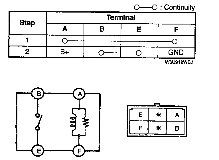 2. Inspect for continuity between the rear window defroster relay terminals by using an ohmmeter.