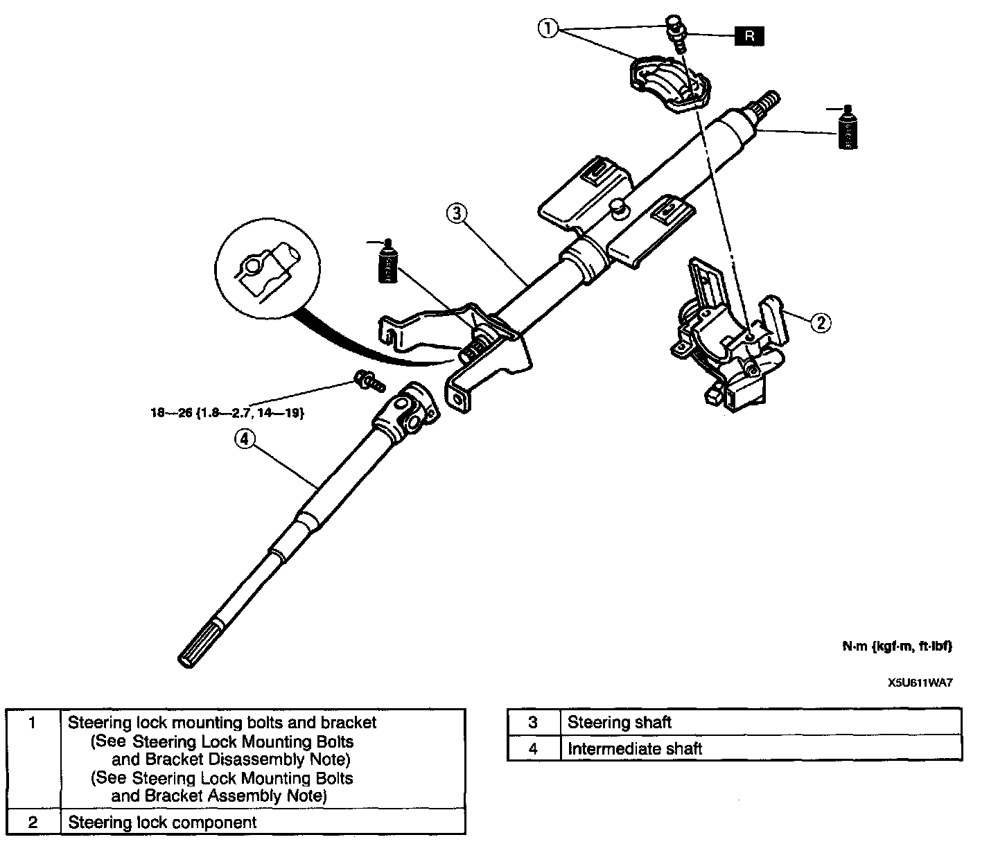 STEERING SHAFT DISASSEMBLY/ASSEMBLY1. Disassemble in the order indicated in the table.