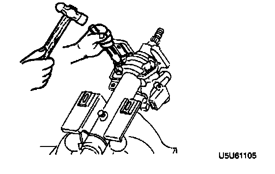1. Use a chisel to make a groove in the heads of the steering lock mounting bolts. Remove the bolts with a screwdriver. Remove the steering lock component.