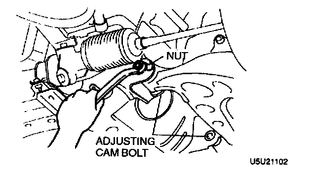 2. Turn the front and rear adjusting cam bolts the same amount in the opposite direction equally to provide the correct camber angle.