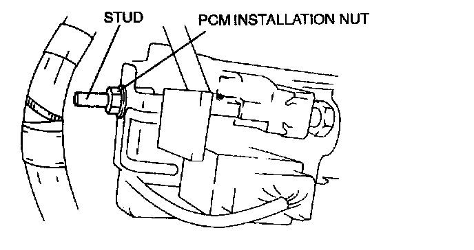 2. While pushing the harness, push the stay until it comes apart from the stud with the PCM installation nut.