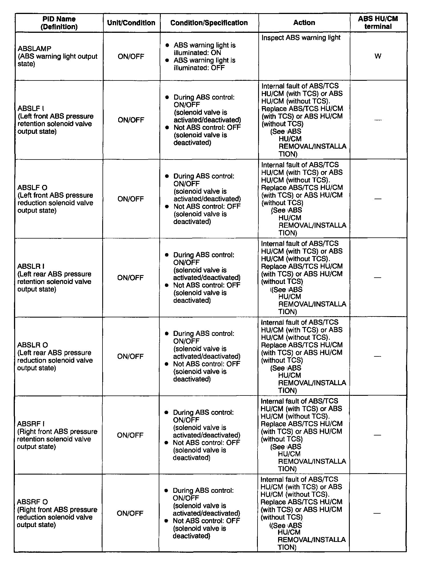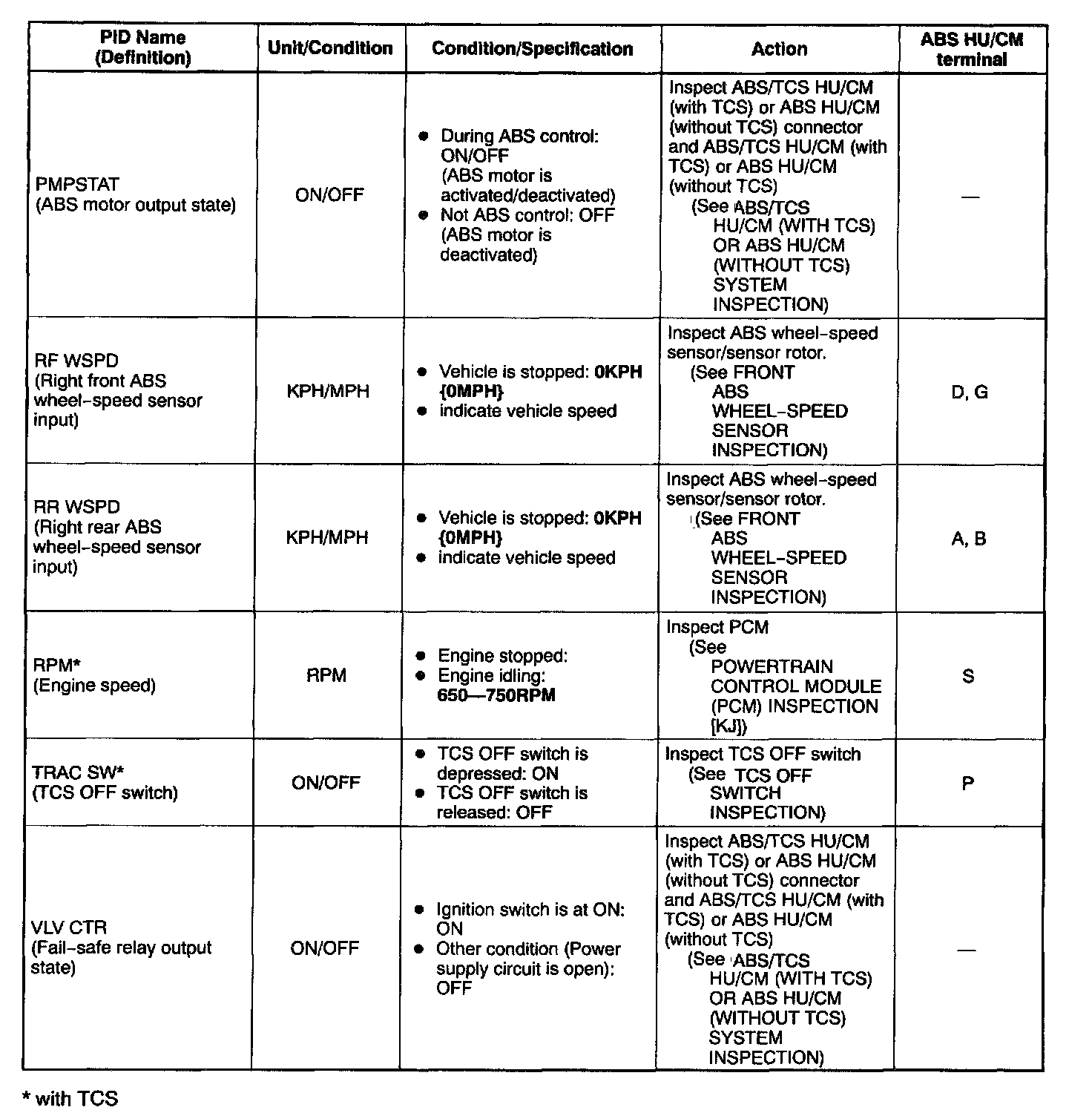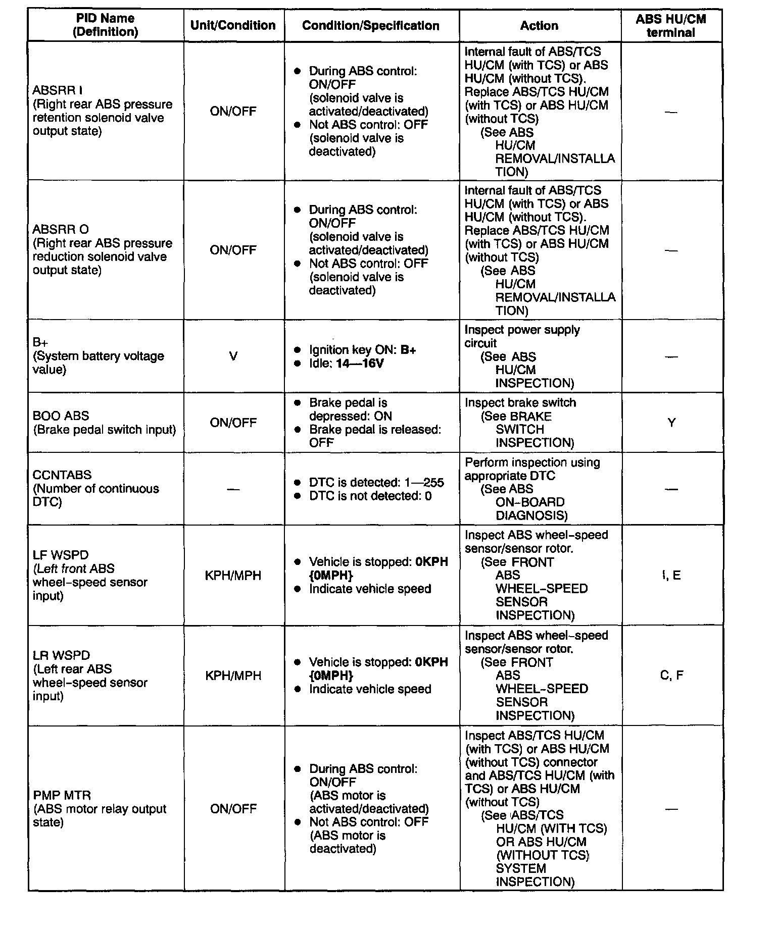PID/DATA MONITOR TABLE