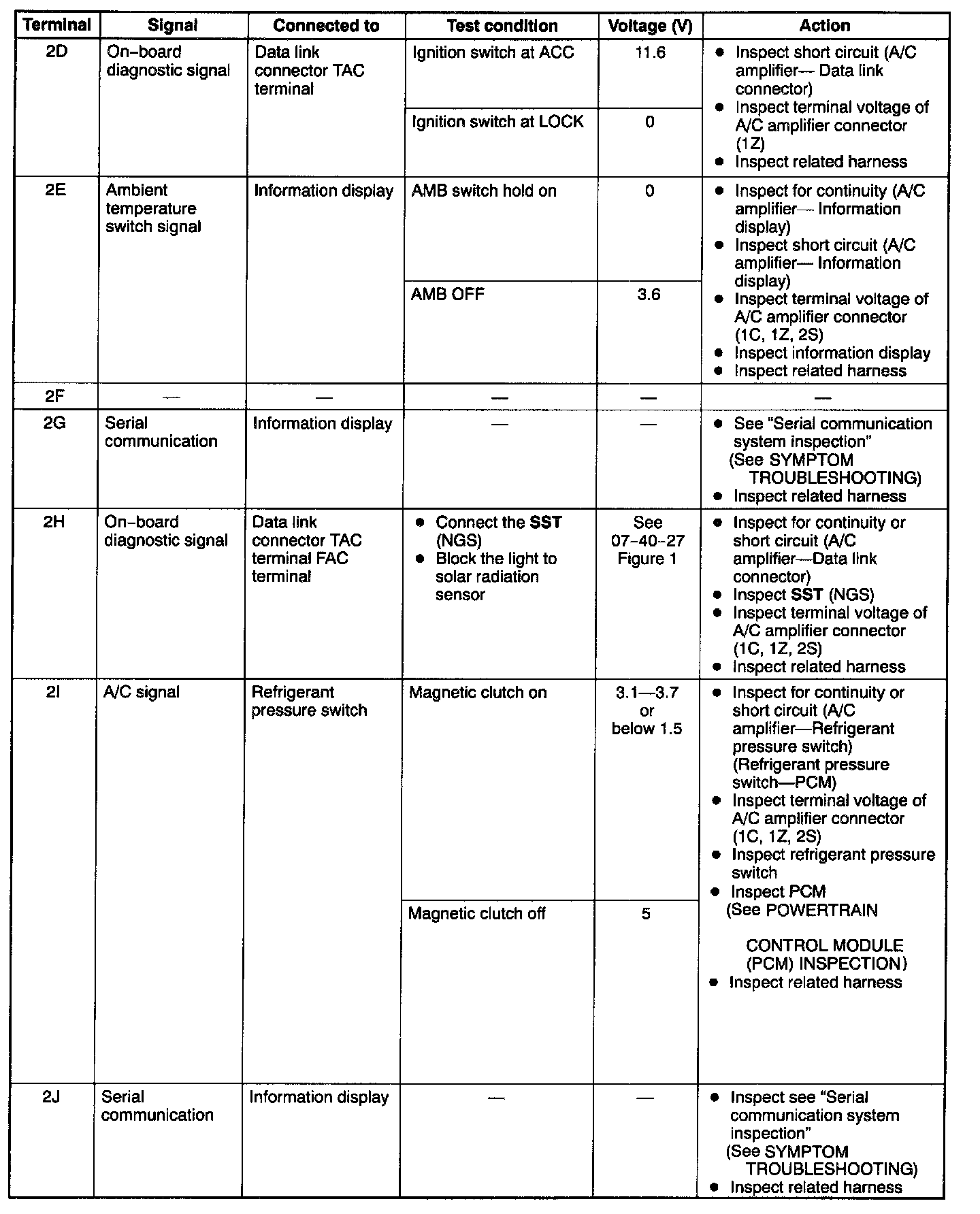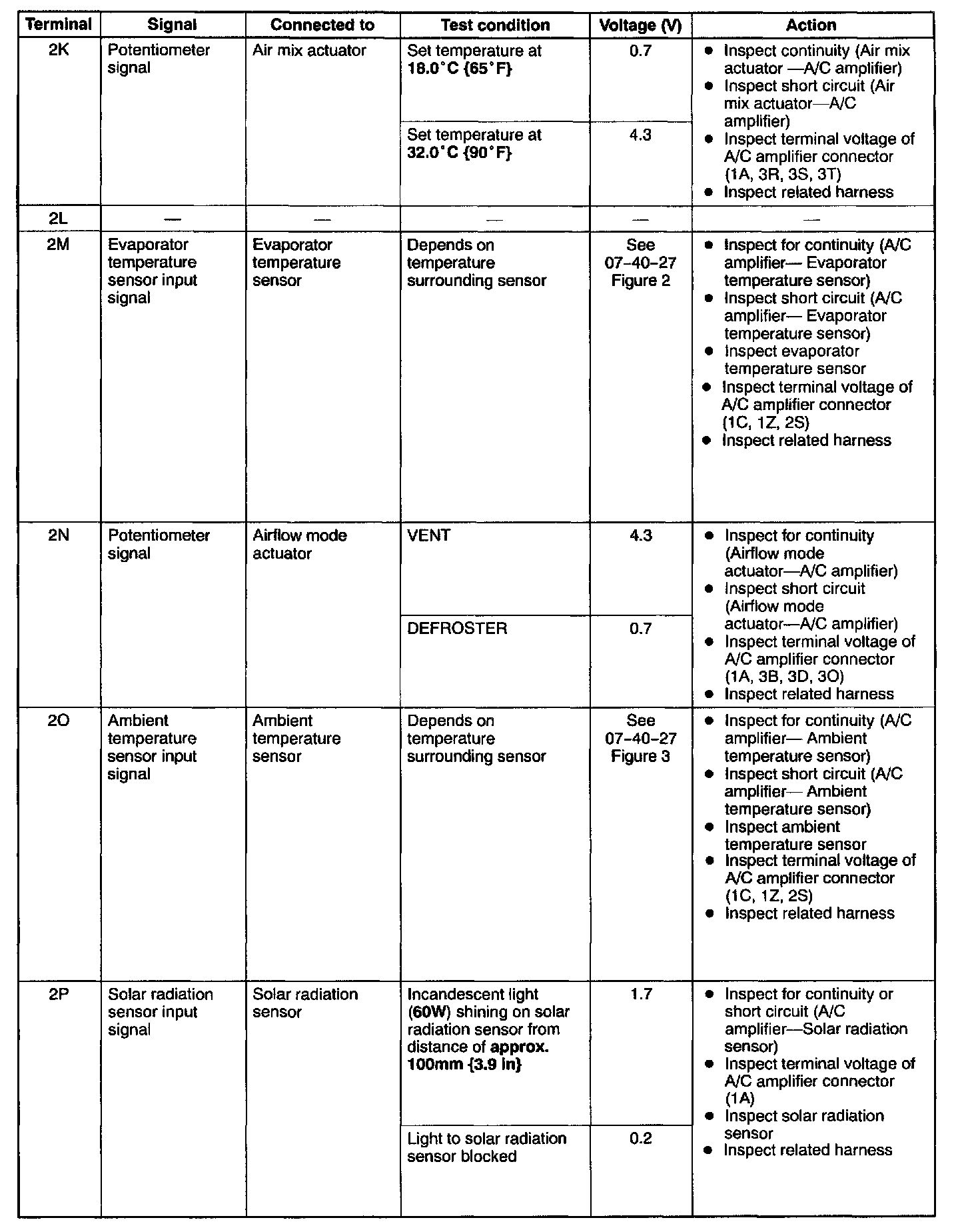 4. Measure the voltage at each A/C amplifier terminal and refer to the terminal voltage table.
