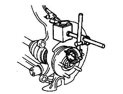 2. Position a dial indicator against the wheel hub. Push and pull the wheel hub by hand in the axial direction and measure the wheel bearing play.