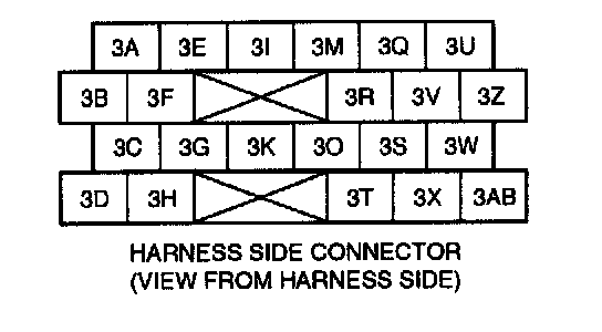 4. Verify there is continuity between the PCM connector terminal 3A and each sensor connector terminals such as TP sensor and others, which is applied with Vref.