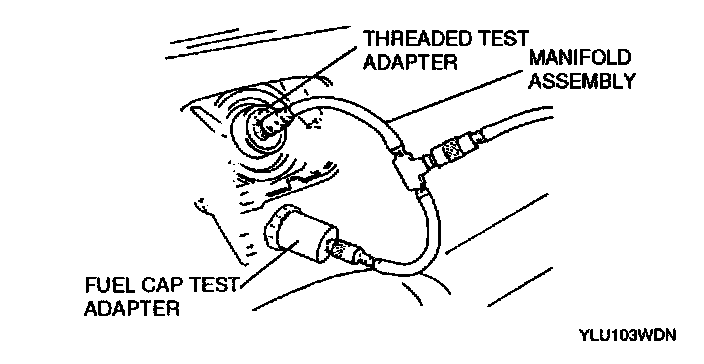 4. Connect the threaded test adapter (part of SST) to the manifold assembly and fuel-filler neck.