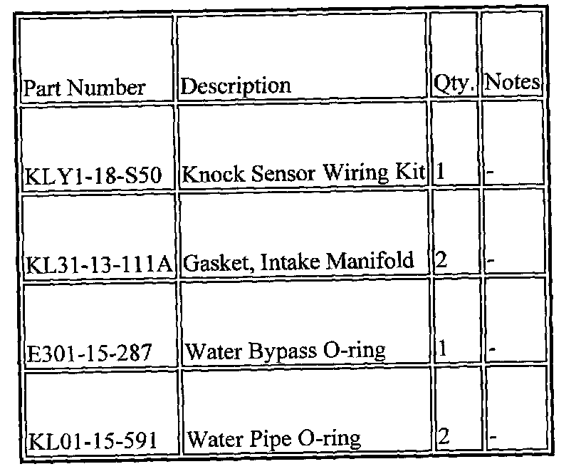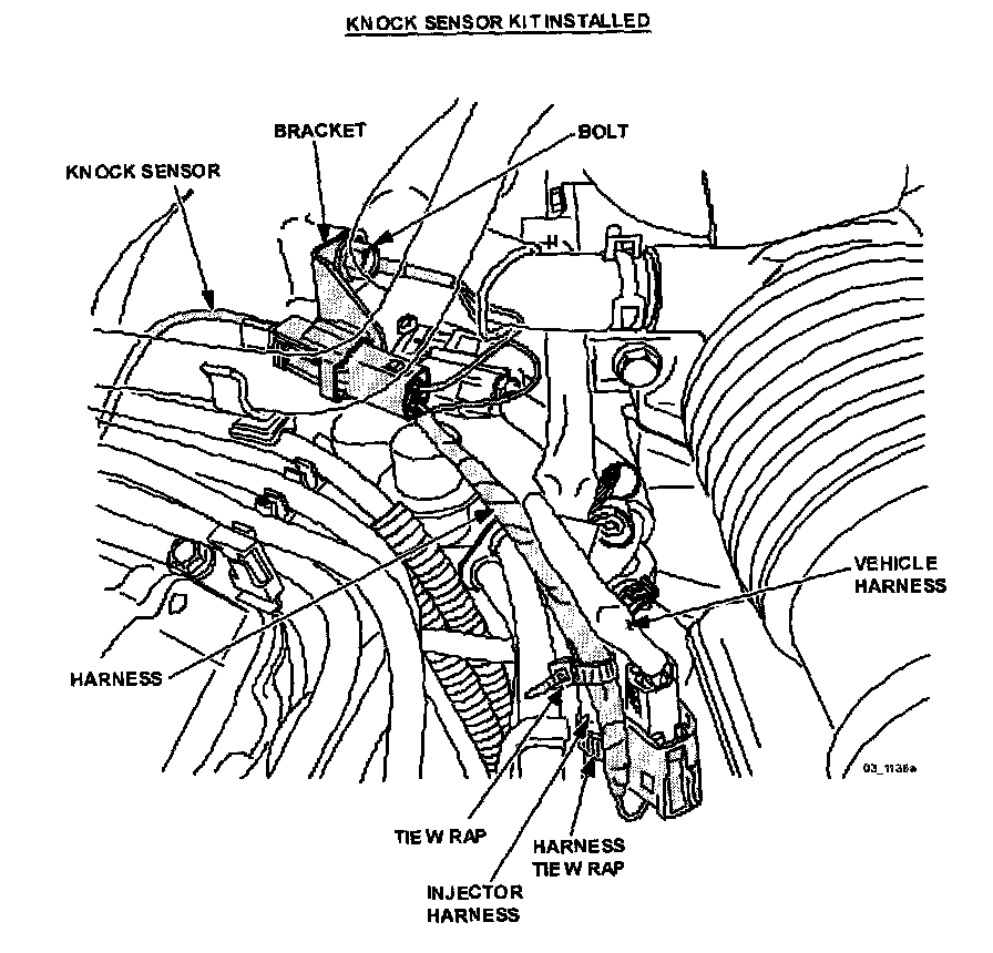 4. Replace the Knock Sensor with a modified part (from the kit) according to Workshop Manual (section 01-40A) KNOCK SENSOR REPLACEMENT [KL].