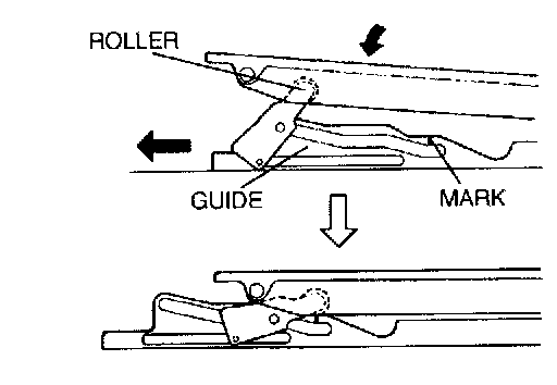 1. Move the guide backward and align the center of the roller with the mark written on the guide.