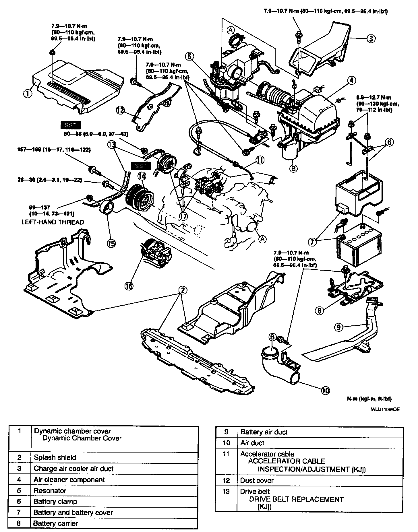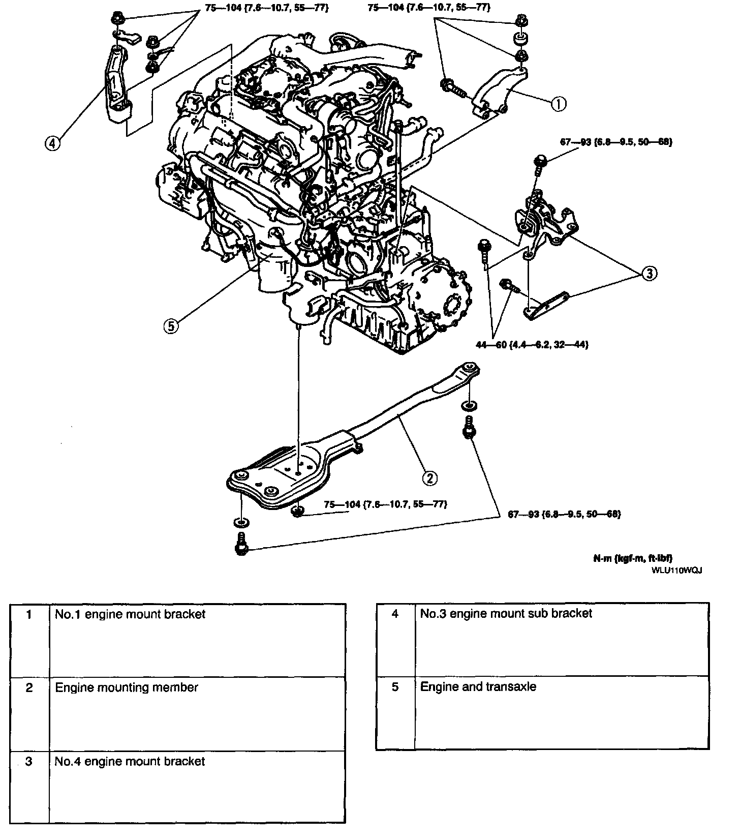 Tightening torque B: 67 - 93 Nm (6.8 - 9.5 kgf-m, 50 - 68 ft. lbs.)