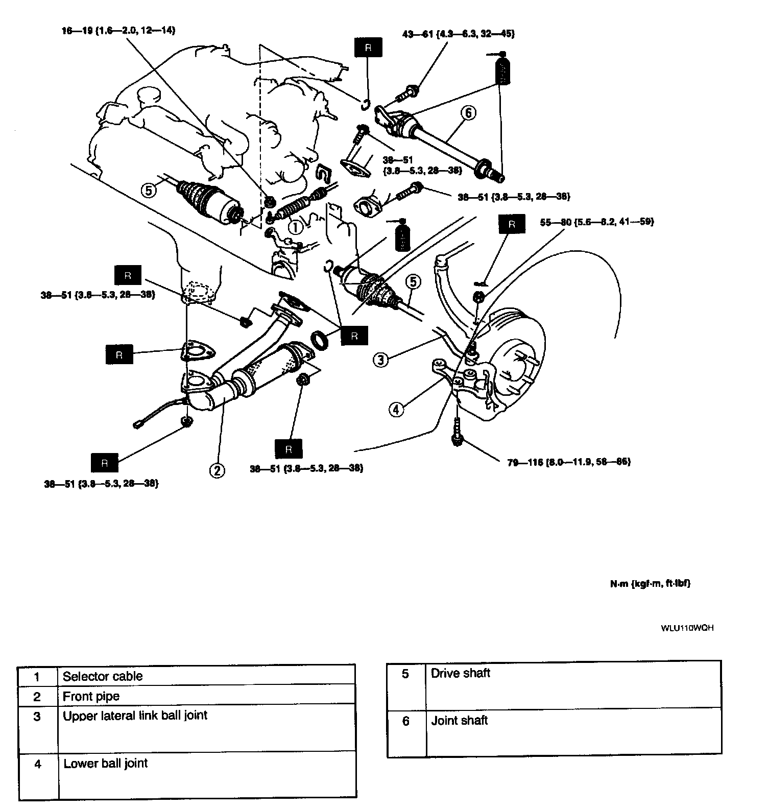 Tightening torque C, F: 67 - 93 Nm (6.8 - 9.5 kgf-m, 50 - 68 ft. lbs.)