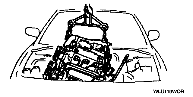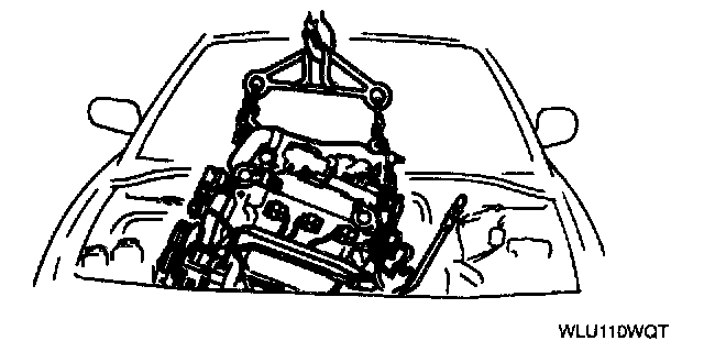 1. Slowly lift up the engine and transaxle as a unit. Keep the engine from swinging or bumping into components in the engine compartment.