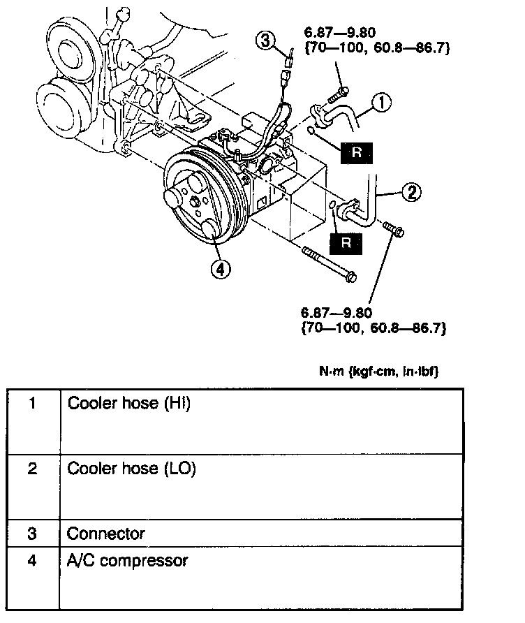 6. Remove in the order indicated in the table. Do not allow compressor oil to spill.