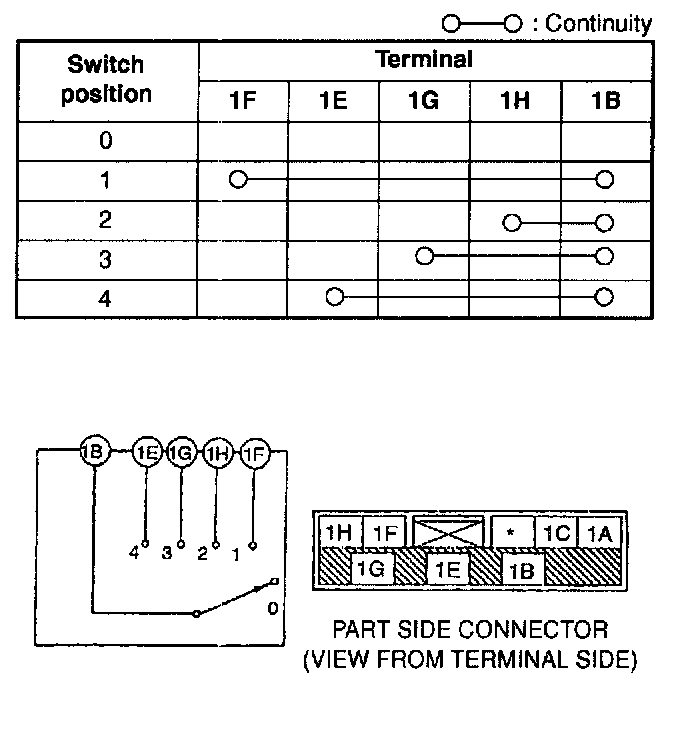 2. Inspect for continuity between the fan switch terminals using an ohmmeter.