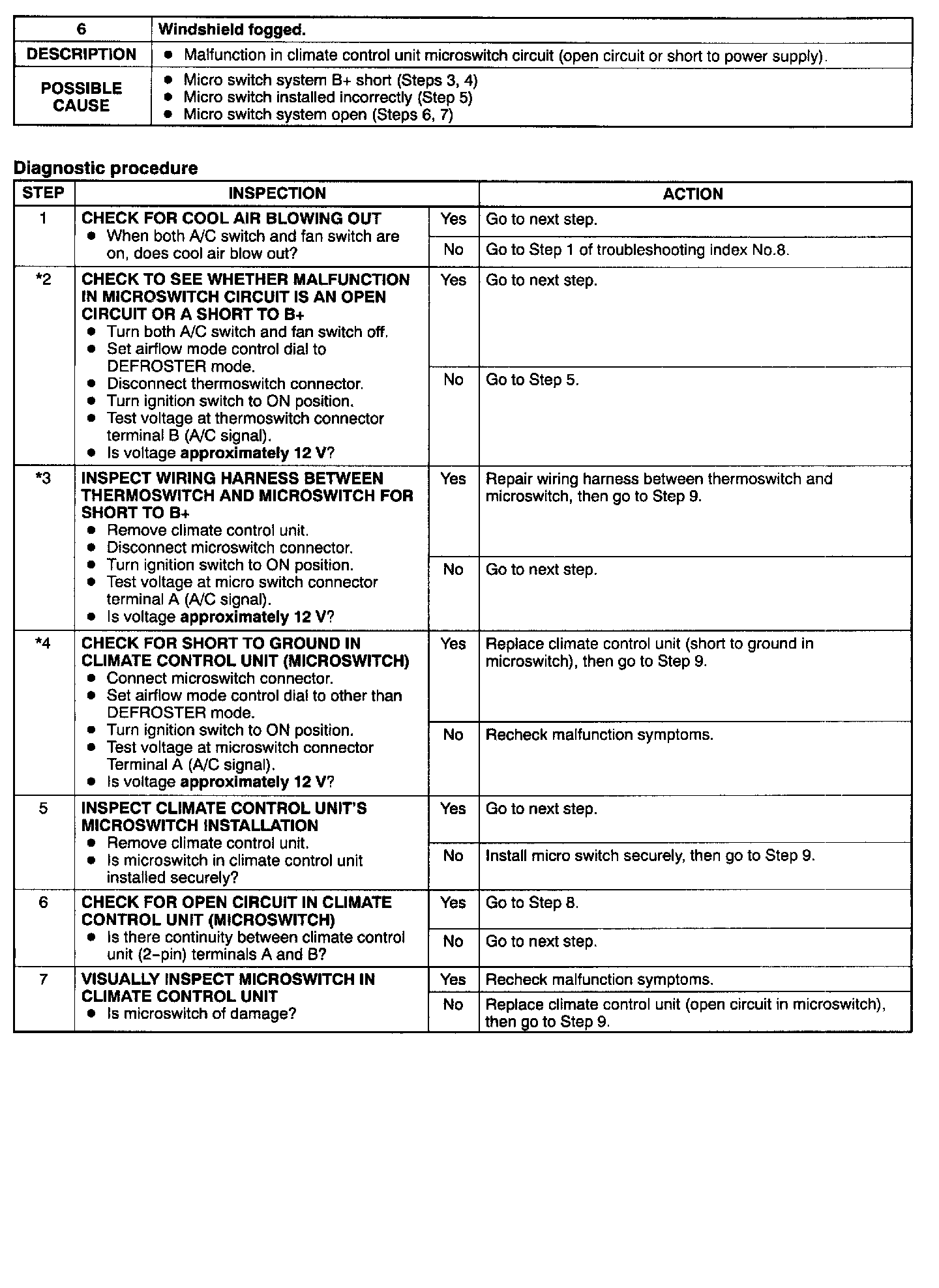 When performing an asterisked (*) troubleshooting inspection, shake the wiring harness and connectors while doing the inspection to discover whether poor contact points are the cause of any intermittent malfunctions. If there is a problem, check to make sure connectors, terminals and wiring harness are connected correctly and undamaged.