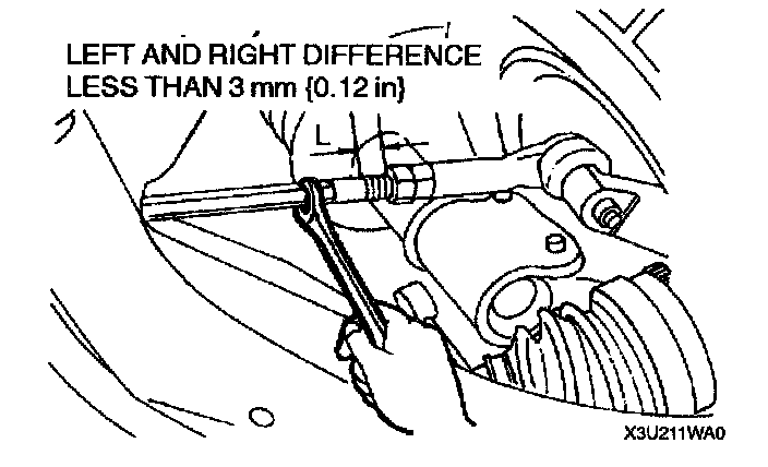 3. Turn the tie rods to equalize the length L.