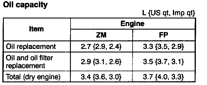 Note: The actual oil level may vary from the specified capacity in some cases.