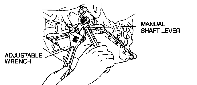 17. Set the adjustable wrench as shown to hold the manual shaft lever.