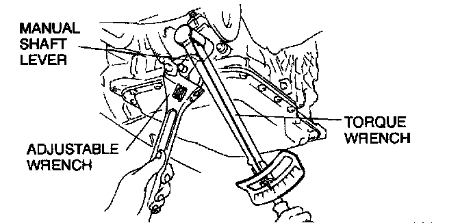 Caution: Do not use an impact wrench. Hold the manual shaft lever when tightening the manual shaft nut, or the transaxle may be damaged.