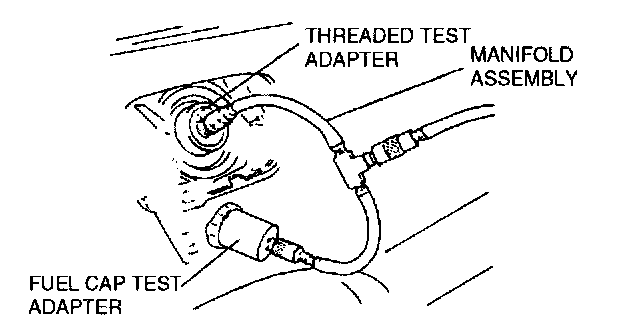 4. Connect the threaded test adapter (part of SST) to the manifold assembly and fuel-filler neck.