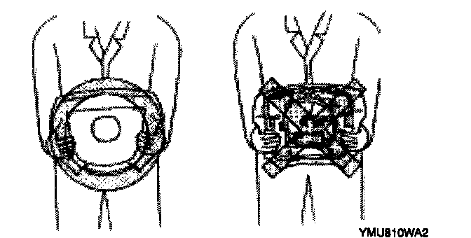 A live (undeployed) air bag module may accidentally deploy when it is handled and cause serious injury. When carrying a live (undeployed) air bag module, point the front surface away from your body to lessen the chance of injury In case it deploys.