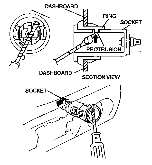 1. Turn the socket while pushing the protrusion of the ring through the hole of the socket with a tape-wrapped screwdriver.