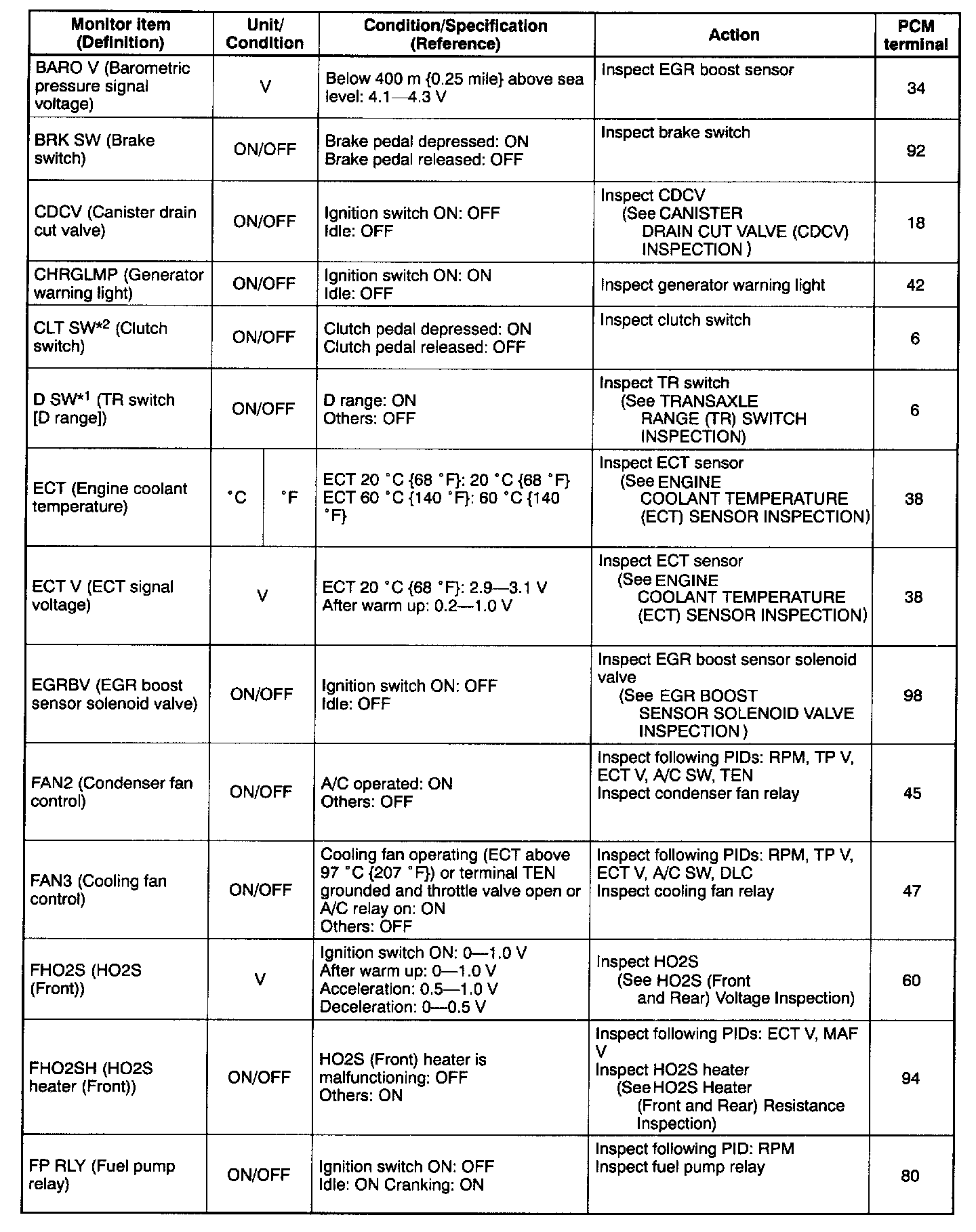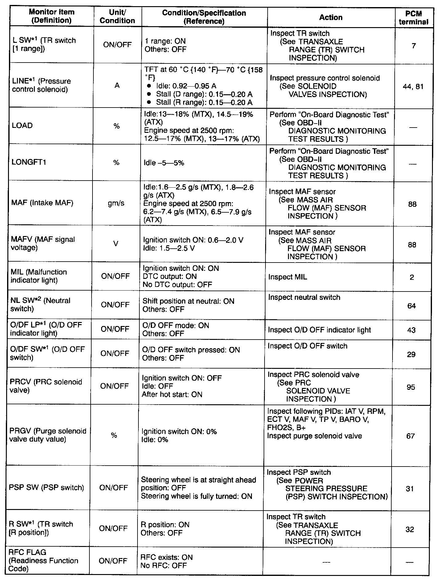 PID/DATA MONITOR Table (Reference)(Part 2 Of 6):