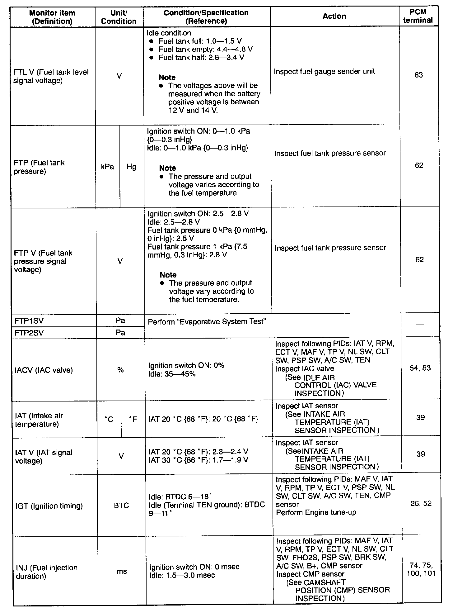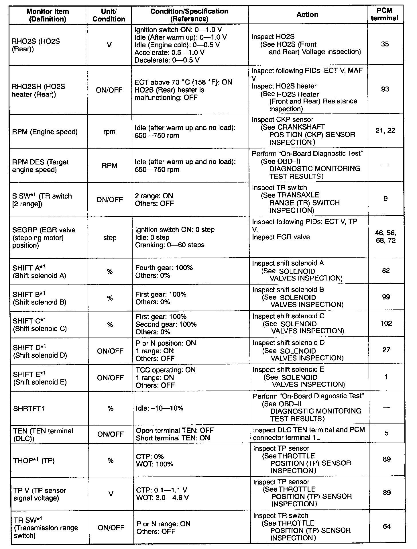 PID/DATA MONITOR Table (Reference)(Part 5 Of 6):