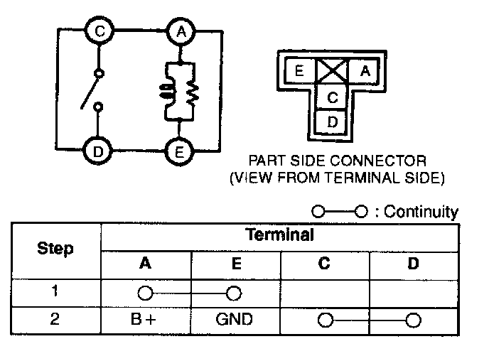 Inspect for continuity between the TNS relay terminals using an ohmmeter.