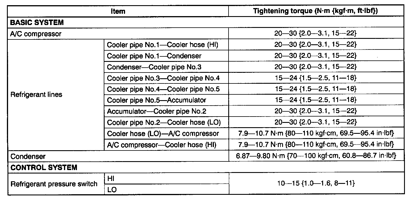 HVAC Tightening Torque: