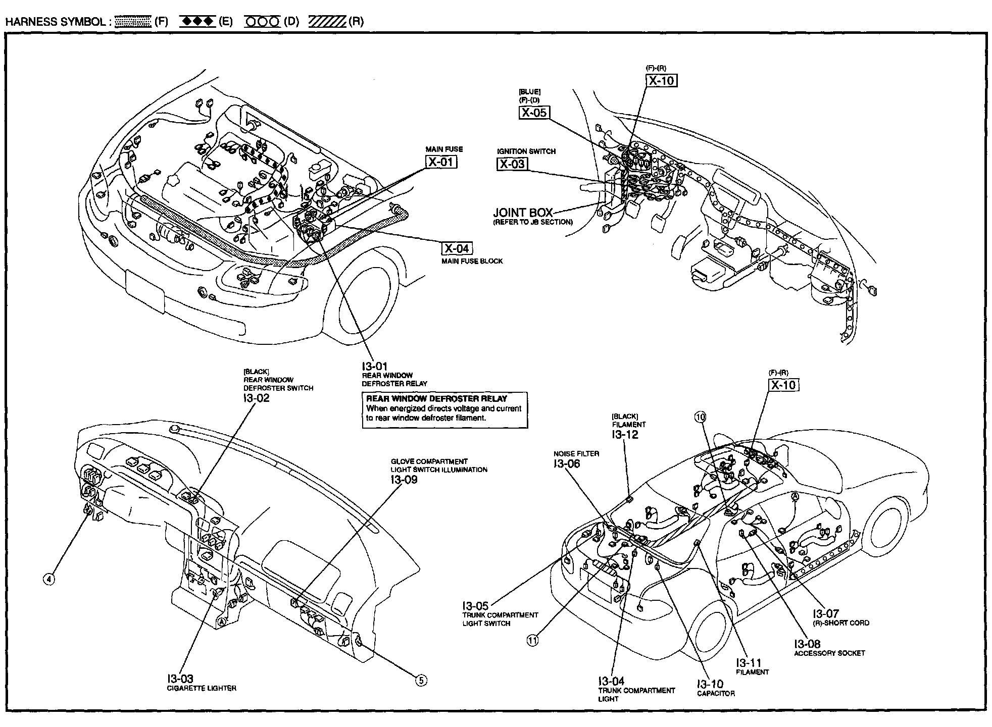 I-3 - Accessory Socket / Cigarette Lighter / Glove Compartment Light / Rear Window Defroster / Trunk Compartment Light Harness/Connector Symbols: