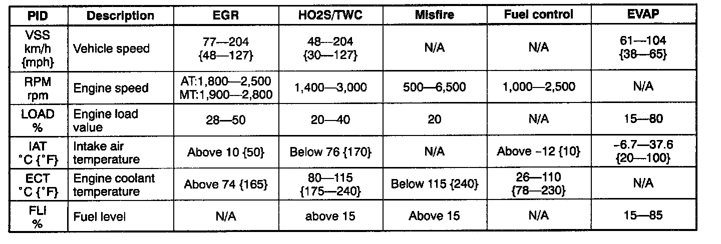 Each OBD II system is monitored (for less than 1 minute) when the specifications below are met.