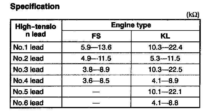 If not as specified, replace the high-tension lead.