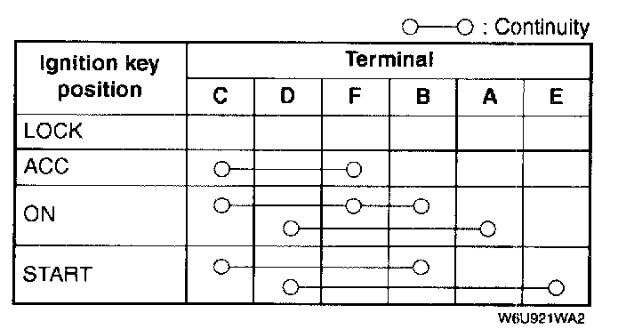 4. Check for continuity between the ignition switch terminals by using an ohmmeter.