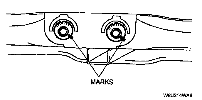 2. Align the marks made before removing the adjusting cam bolt. Tighten the nut.