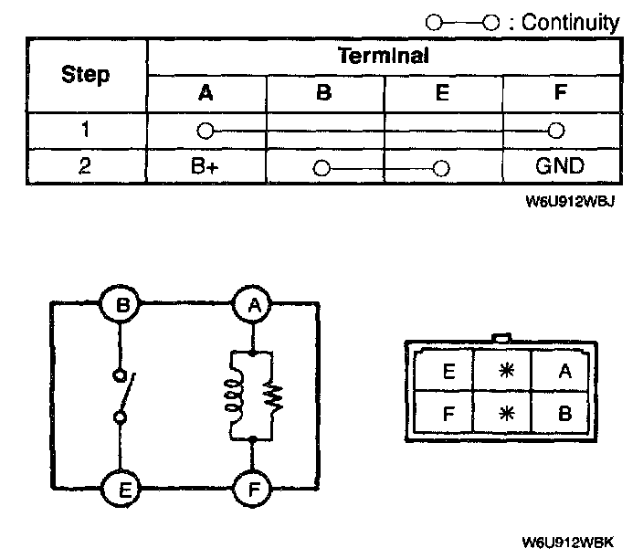2. Inspect for continuity between the rear window defroster relay terminals by using an ohmmeter.