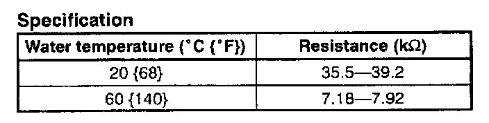 1. Remove the engine coolant temperature sensor.2. Place the engine coolant temperature sensor in water with a thermometer, and heat the water gradually.