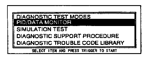 4. Move the cursor to PID/DATA MONITOR AND RECORD.
