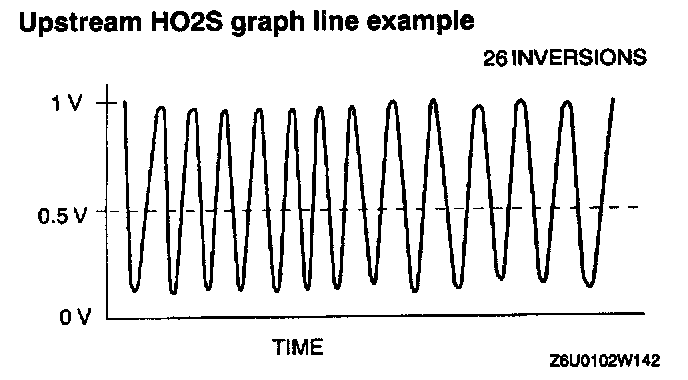 9. Count the number of times (inversions) that the upstream HO2S graph line actually crosses the 0.5 V line.