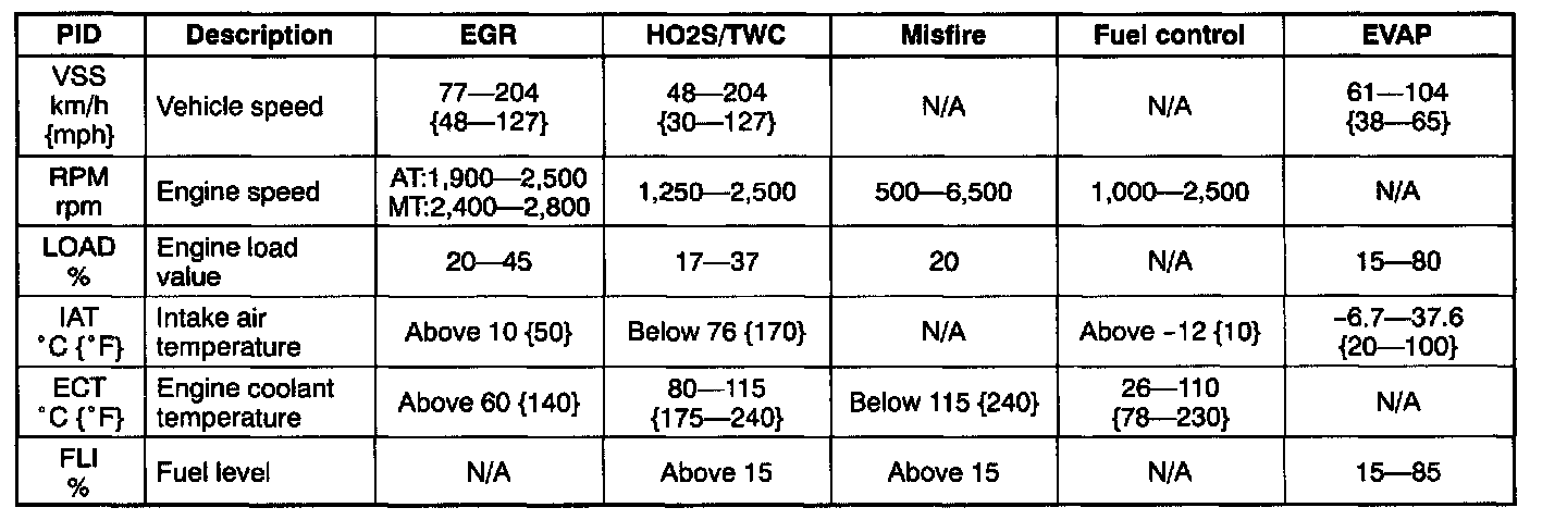 Each OBD II system is monitored (for less than 1 minute) when the specifications below are met.
