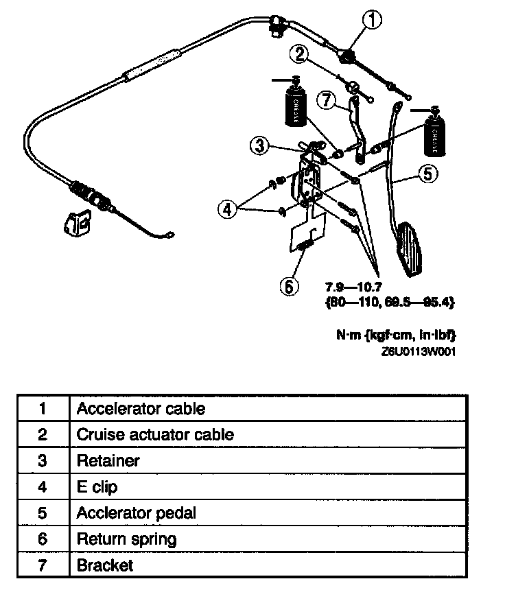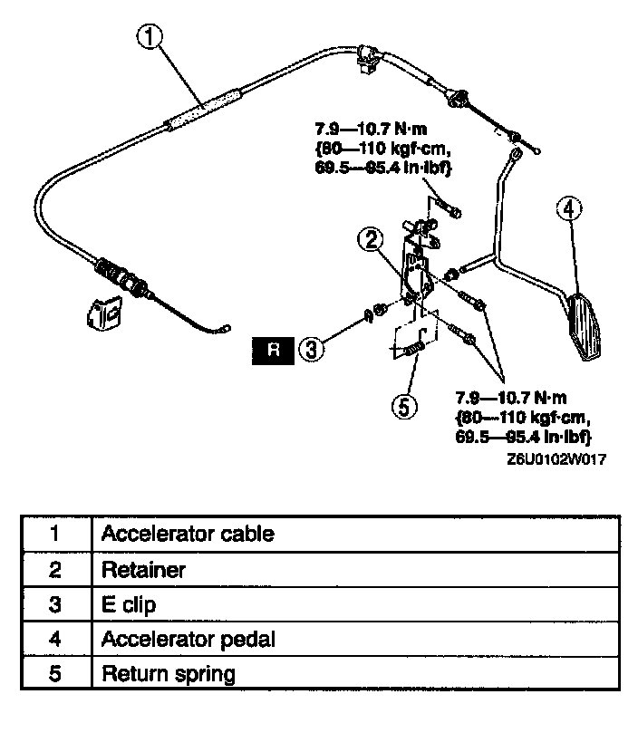 ACCELERATOR PEDAL REMOVAL/INSTALLATIONWithout Cruise Control
