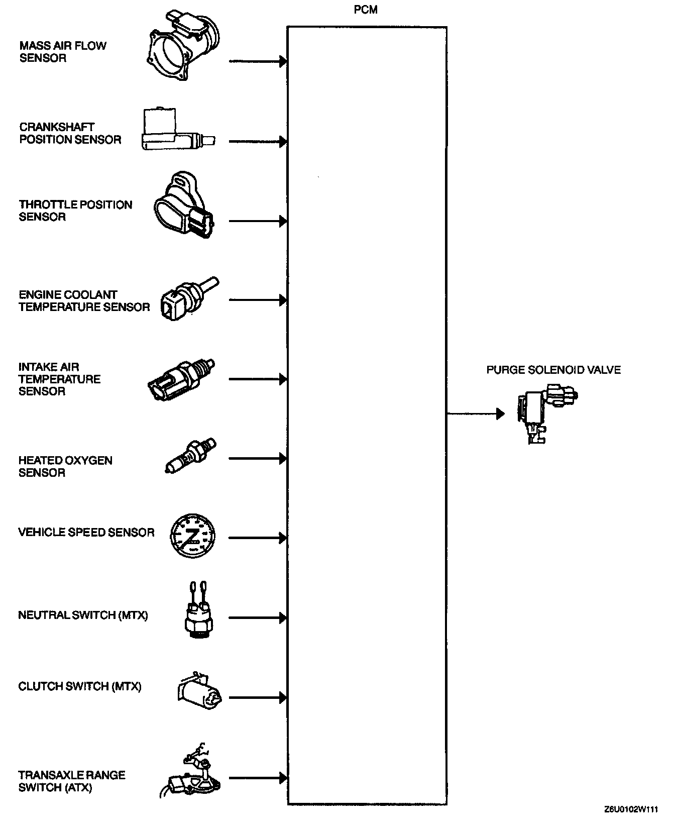 - The PCM sends a duty signal to the purge solenoid valve to control the purge amount.