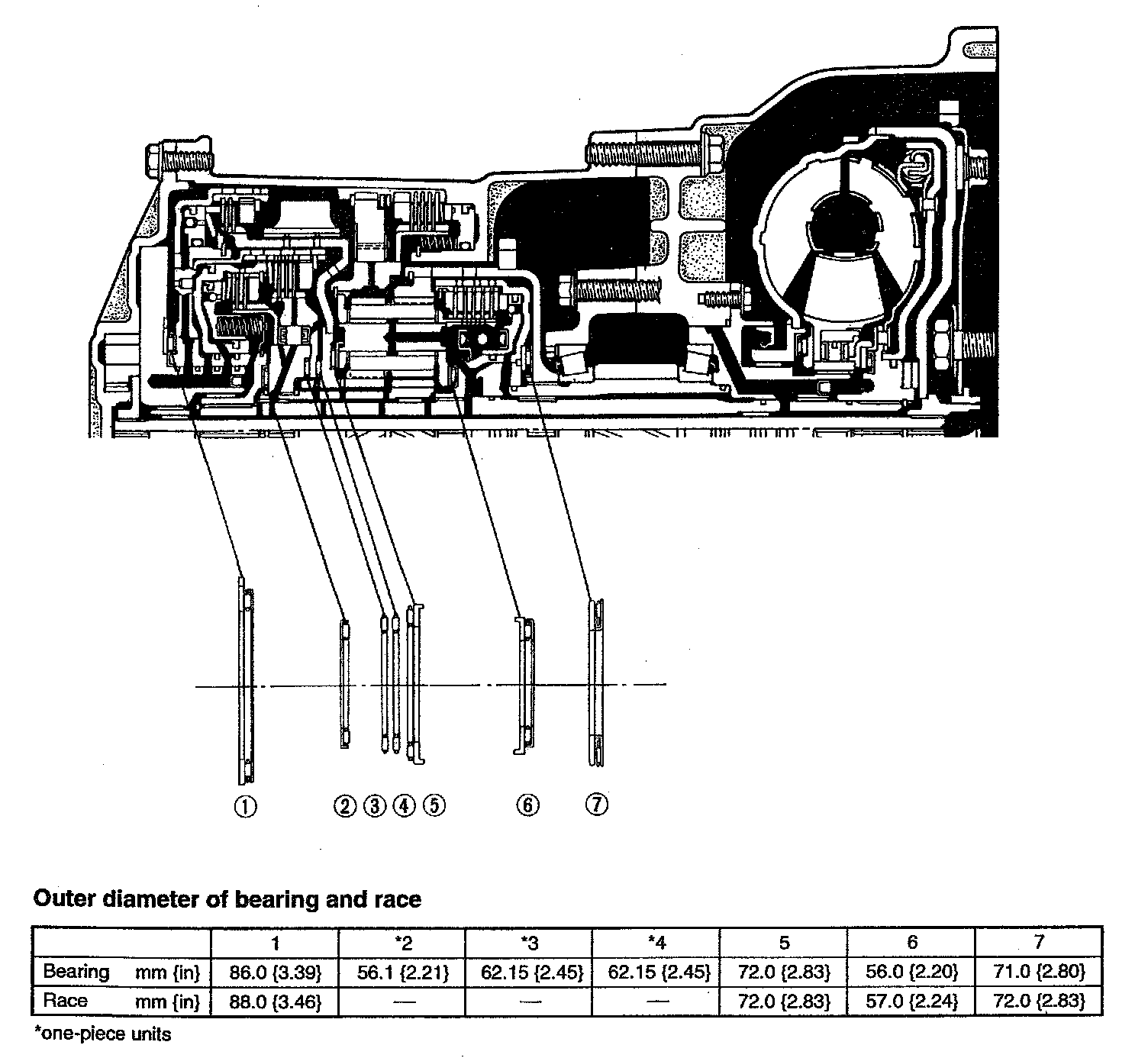 1. Verify that the thrust bearing and bearing race are installed in the correct position.