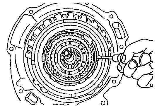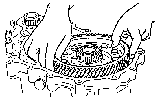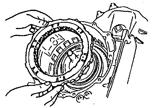 3. Install the carrier hub assembly into the 3-4 clutch drum by rotating it.