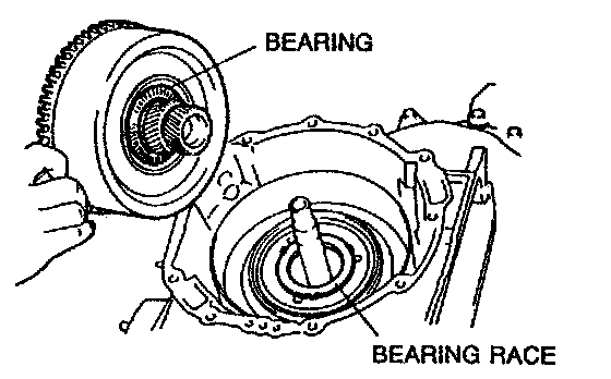 10. Install the selected shim(s) and bearing race into the transaxle case.